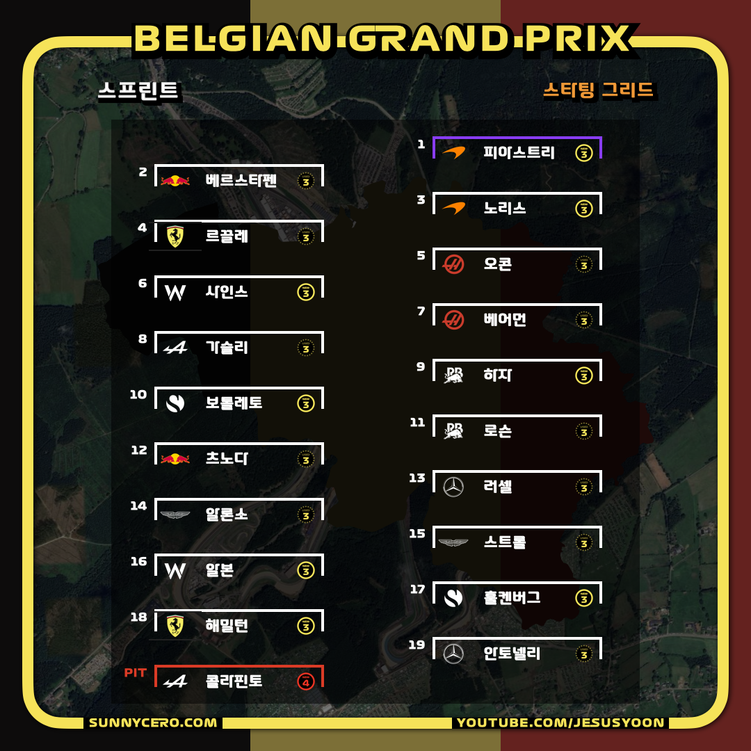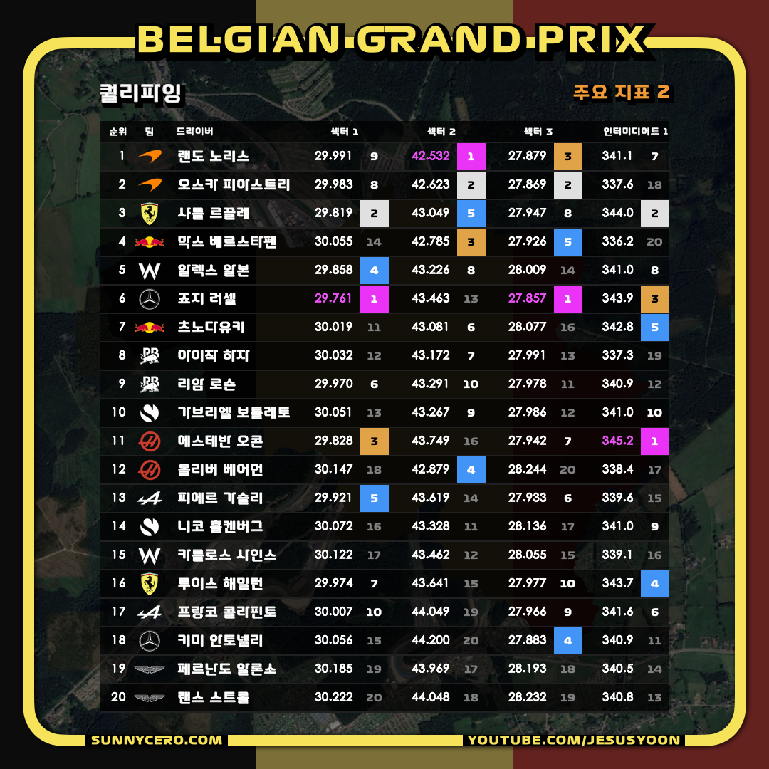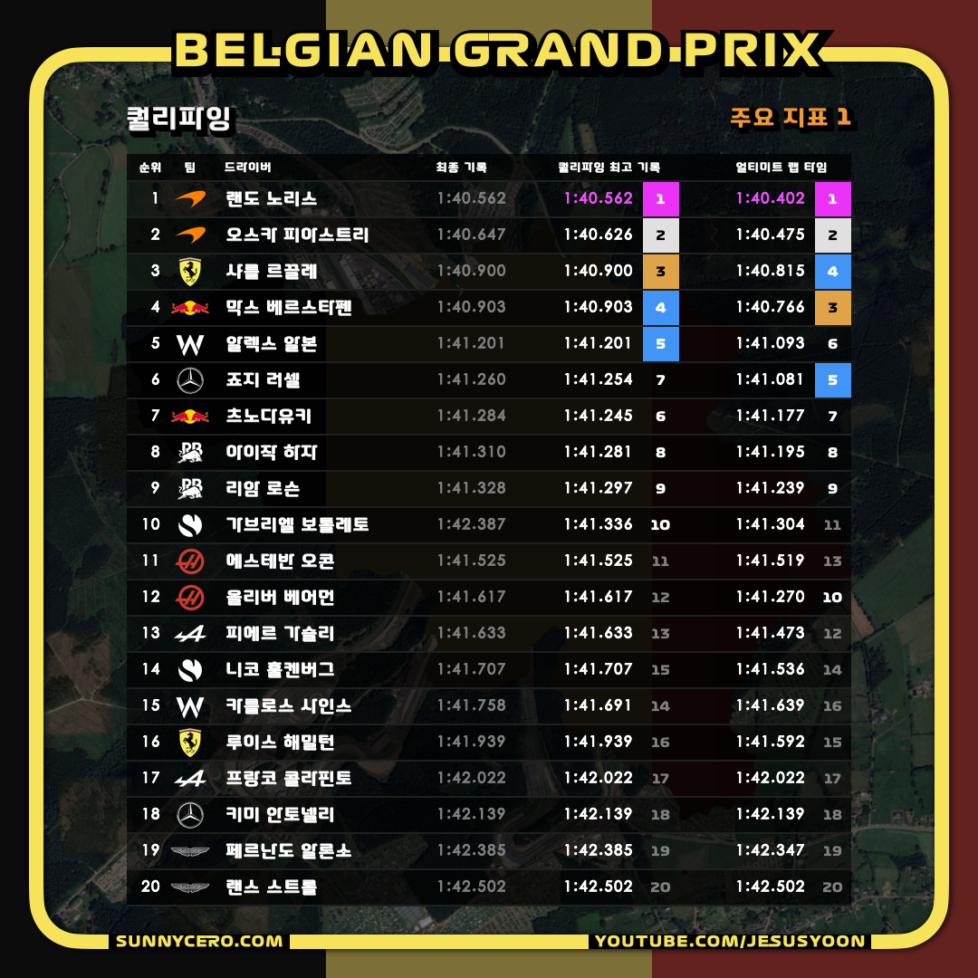| [F1 2025 제13라운드] 벨기에 그랑프리 금요일 결과 (1) | 2025.07.26 |