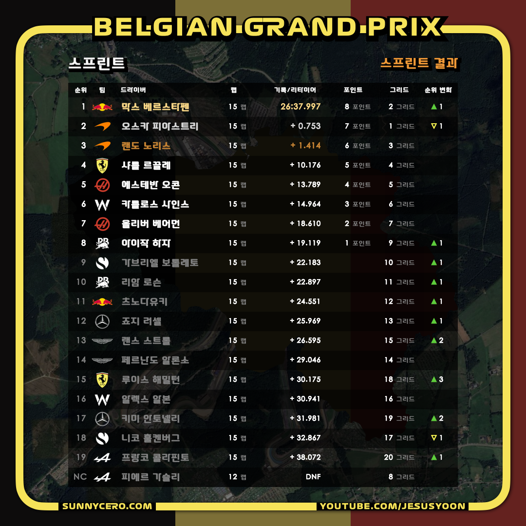 | [F1 2025 제13라운드] 벨기에 그랑프리 레이스 결과 (0) | 2025.07.28 |