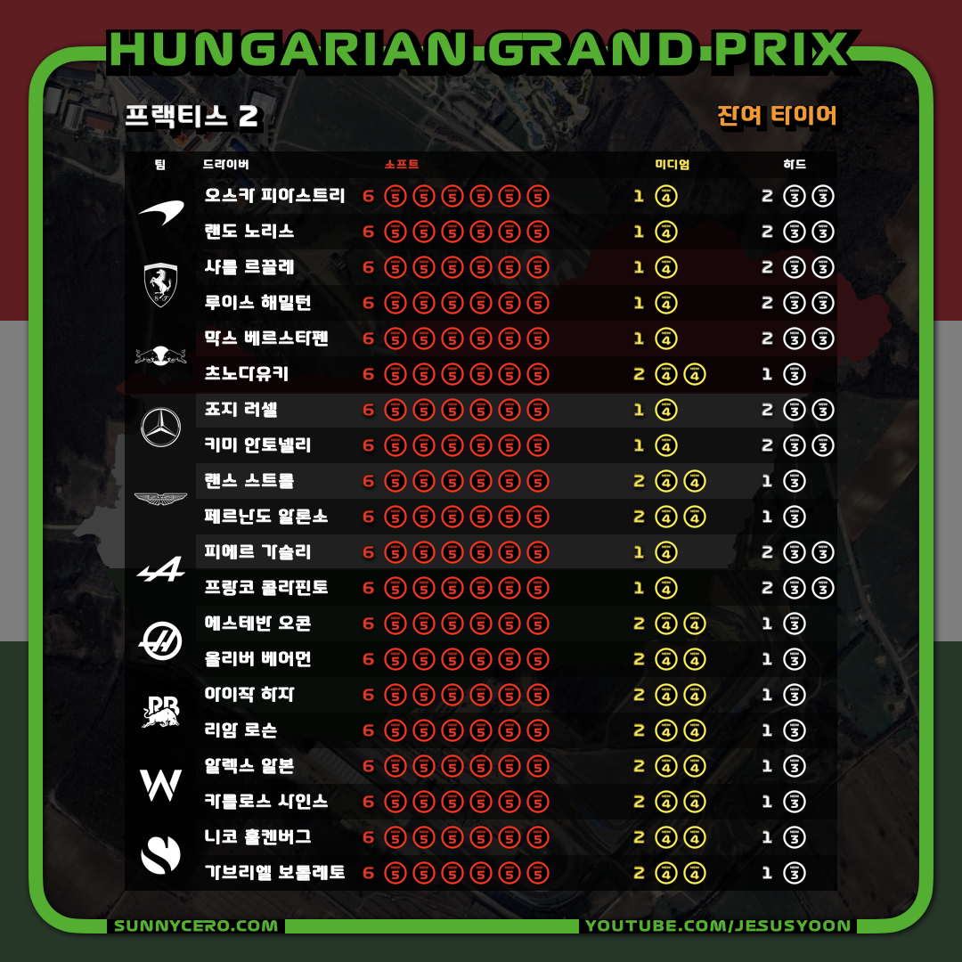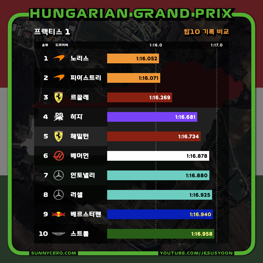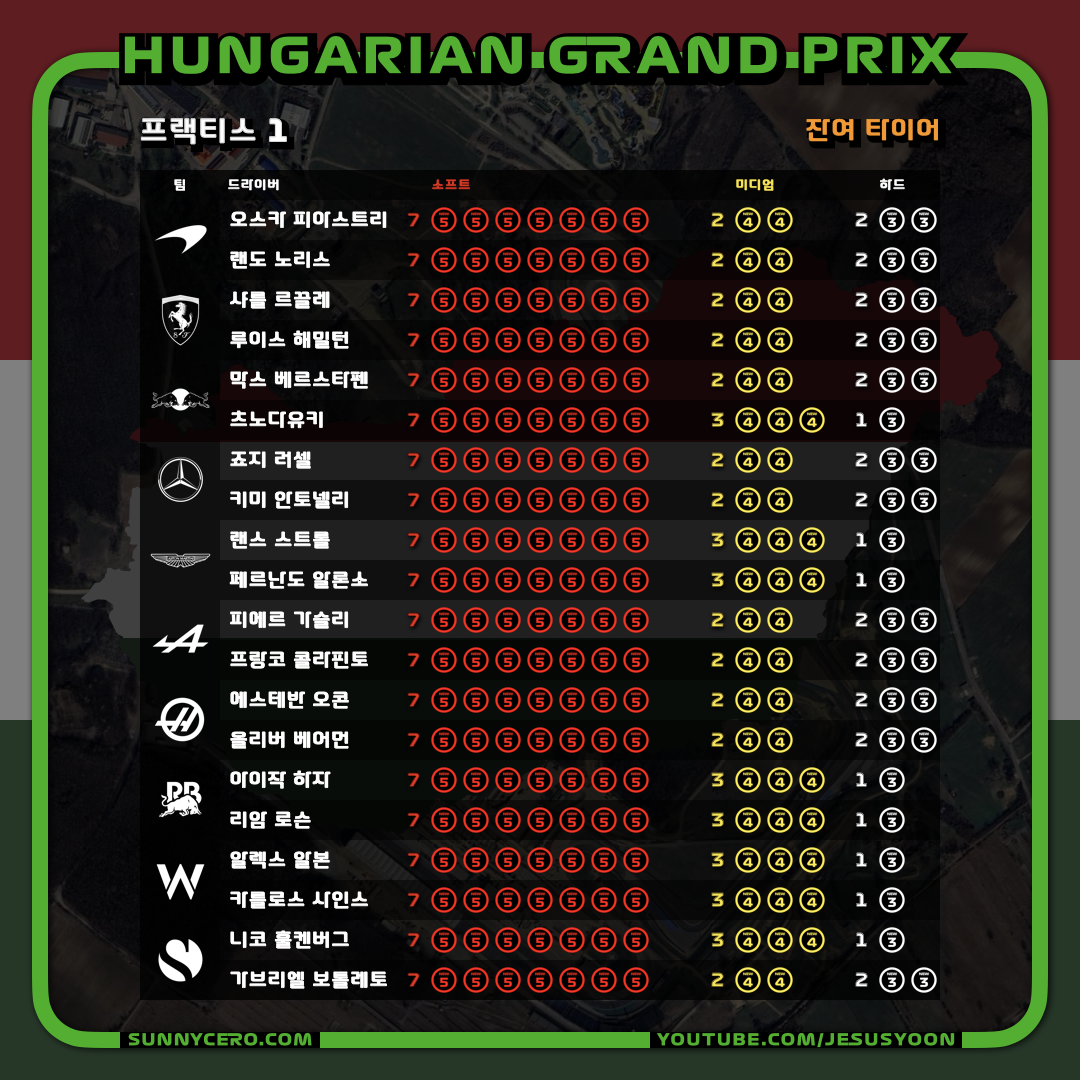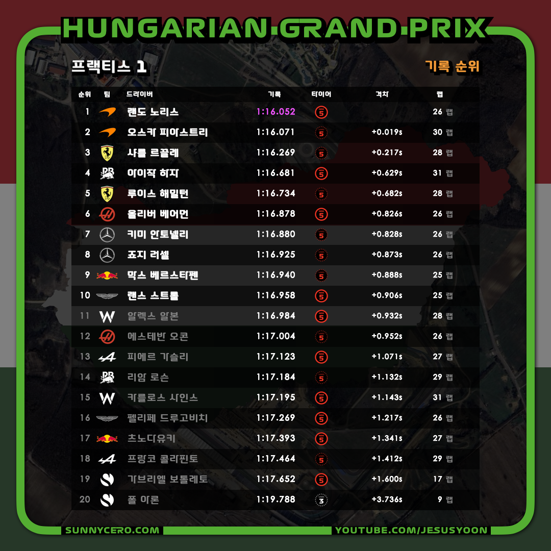 | [F1 2025 제14라운드] 헝가리 그랑프리 토요일 결과 (1) | 2025.08.03 |