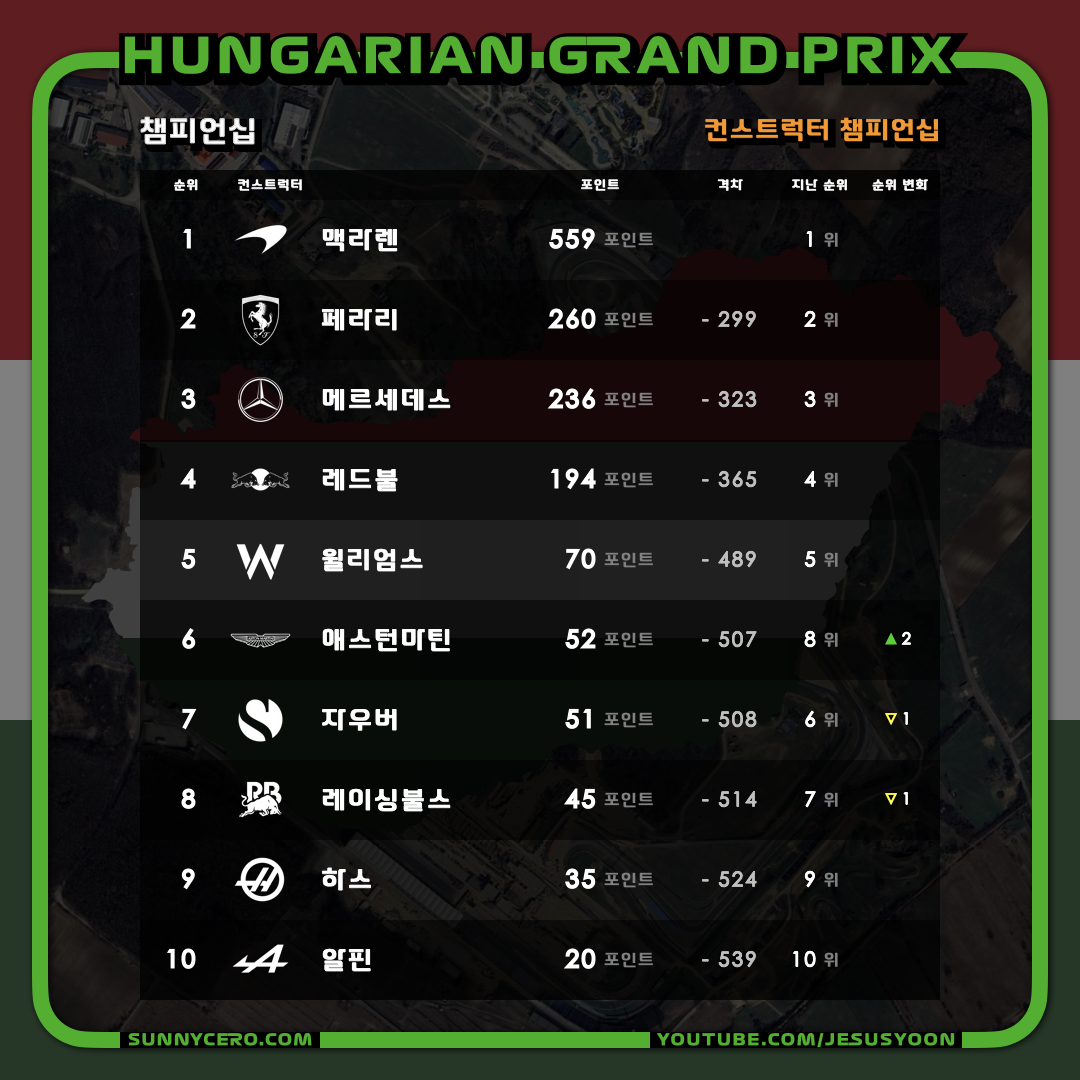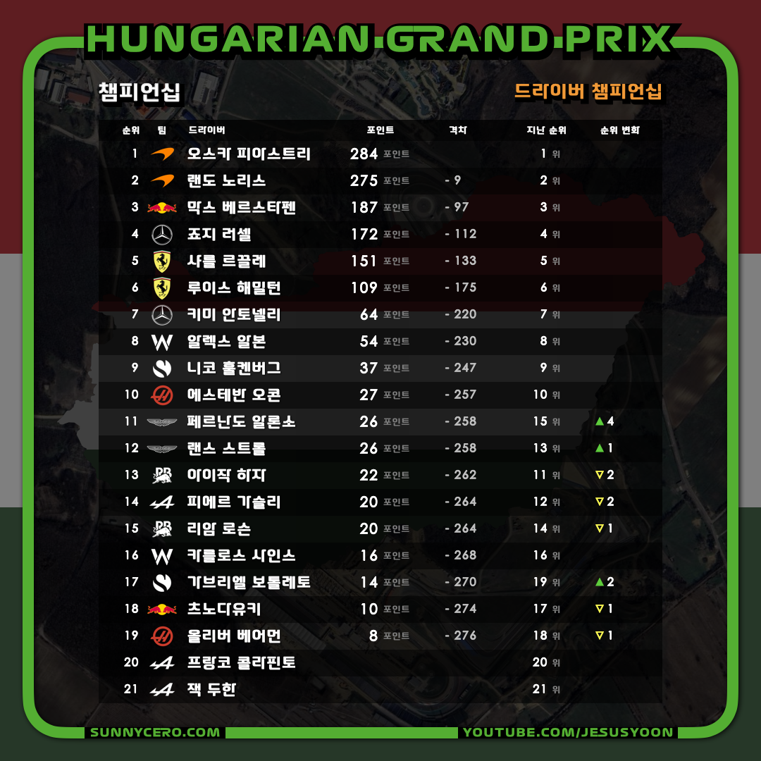 | [F1 2025 제14라운드] 헝가리 그랑프리 금요일 결과 (1) | 2025.08.02 |